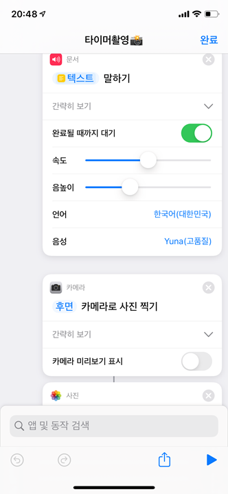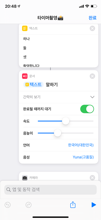 텍스트 말하기가 한 3~4초 소요 되더라구염