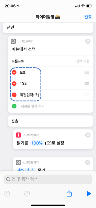 10초 설정에도 같은 동작들을 추가해줍니다